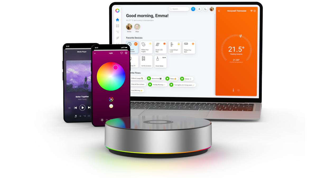 From Philips Hue and Sonos to KNX, Shelly or Apple HomeKit — Homey connects them all through one beautifully designed app that’s really easy to use.