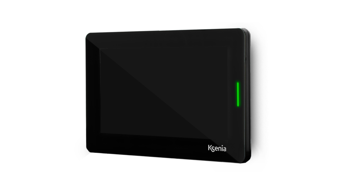 The device features a 7-inch touchscreen display with a 1024×600 resolution, offering clear visibility and smooth interaction. An RFID reader integrated into the screen allows users to authenticate quickly using Ksenia TAG keys.